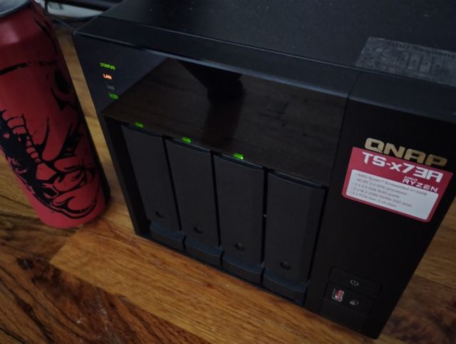 QNAP TS-473A, 32 GB RAM with 3x 12 TB HDDs + 1 TB M.2 SSD
