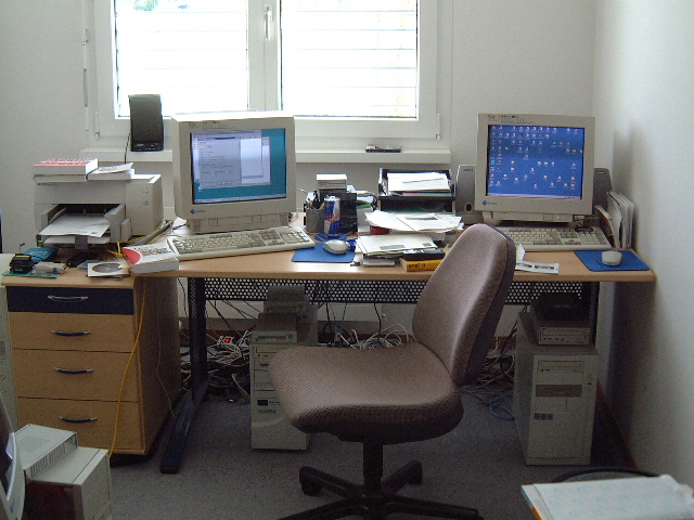 Intel Pentium 3 with 700 MHz (very right), Eizo T57S 17" CRT screen, external SCSI CD burner