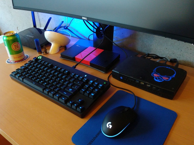 Intel NUC8i7HVK, Intel Core i7-8809G 3.10GHz, 32 GB RAM, 500 GB Samsung 970 EVO SSD, 1 TB Western Digital WD Blue 3D SSD, Radeon RX Vega M GH Graphics, Dell U3419W 34" IPS Screen, Logitech G Pro Keyboard & Mouse